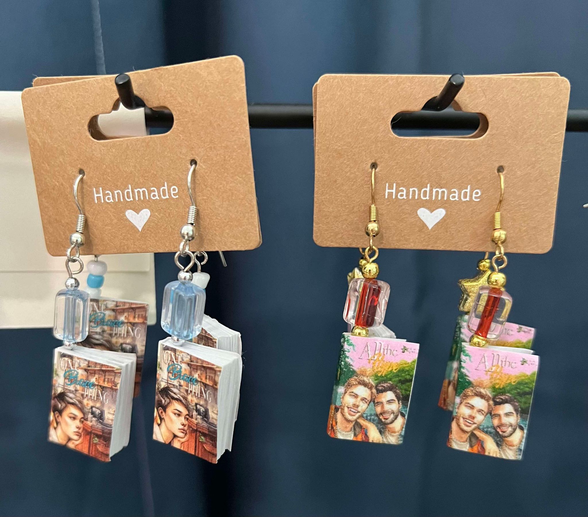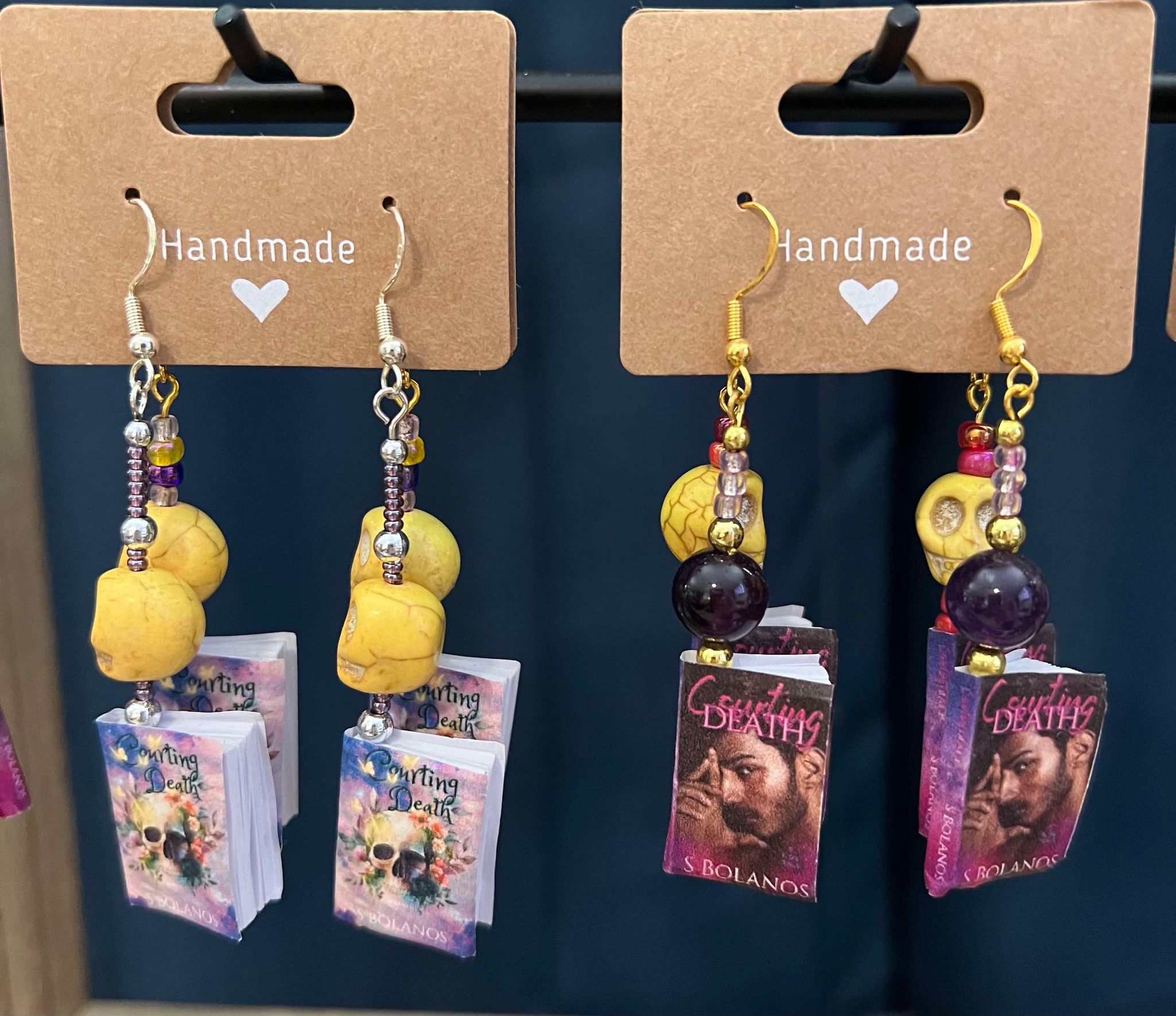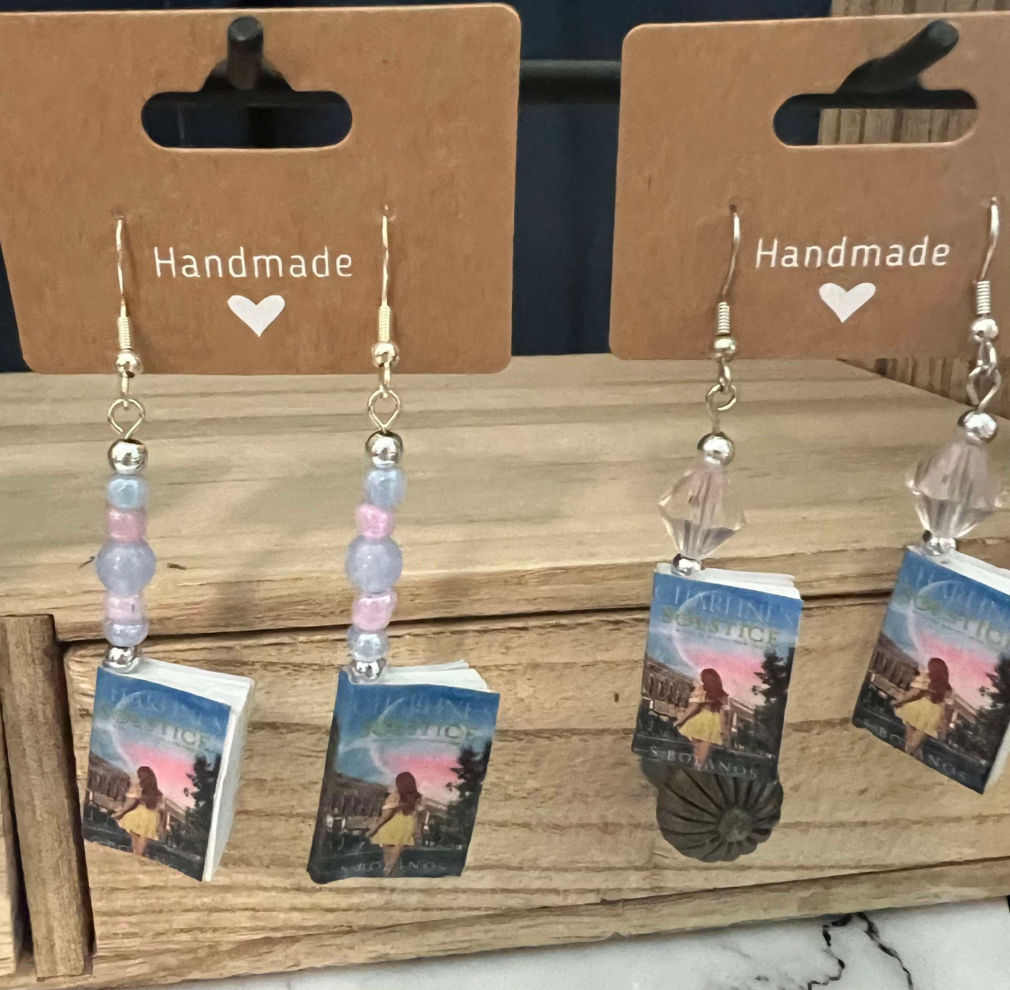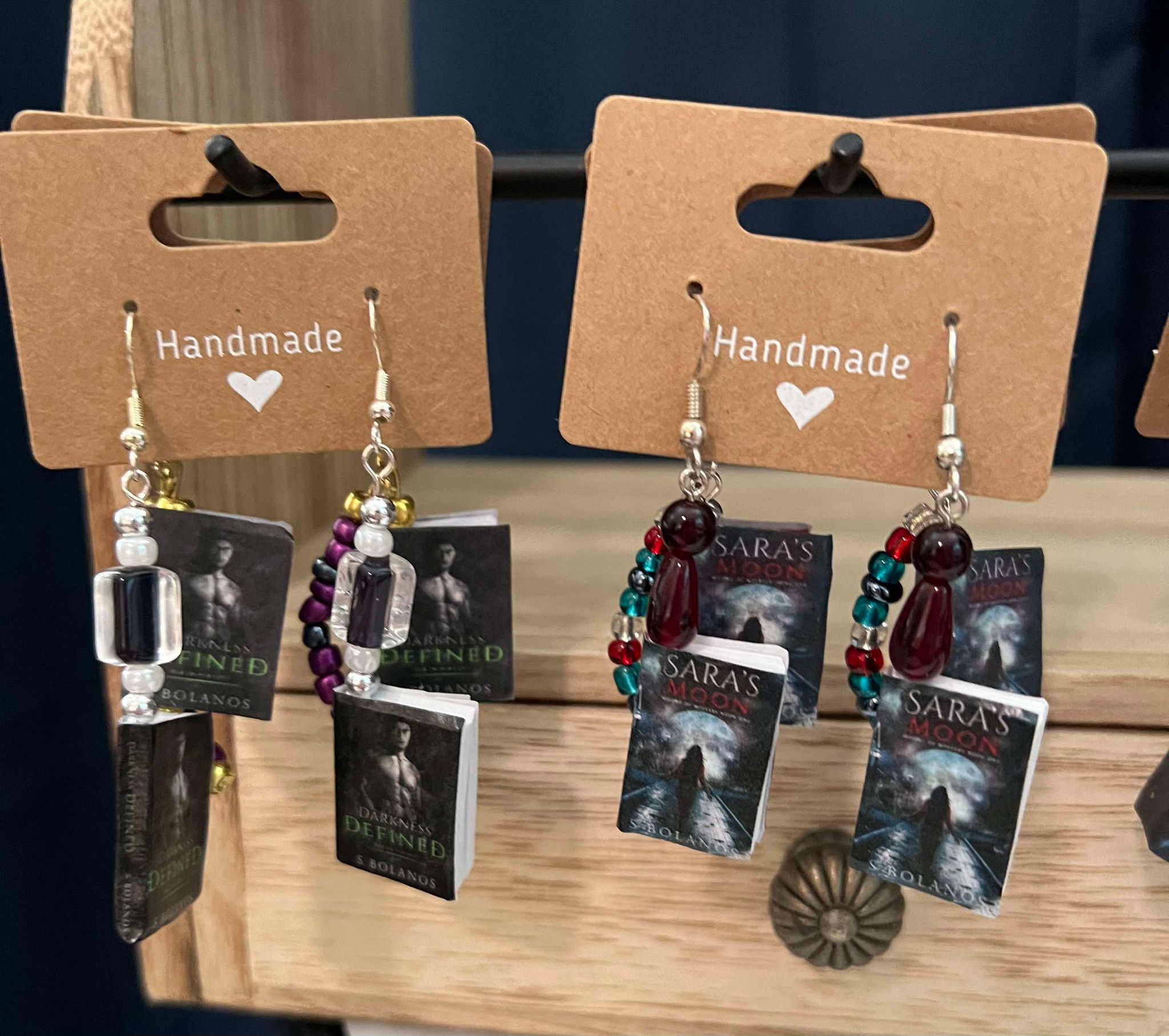 Unique handmade* book earrings with original covers of S Bolanos books.