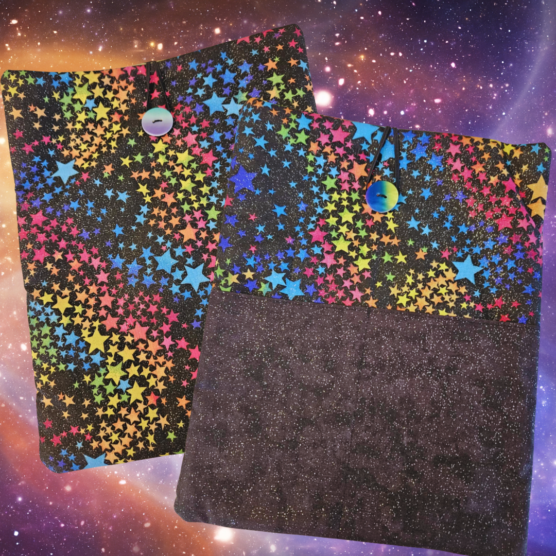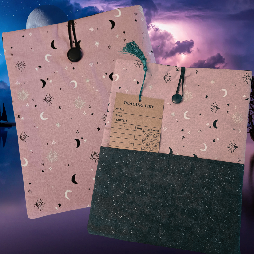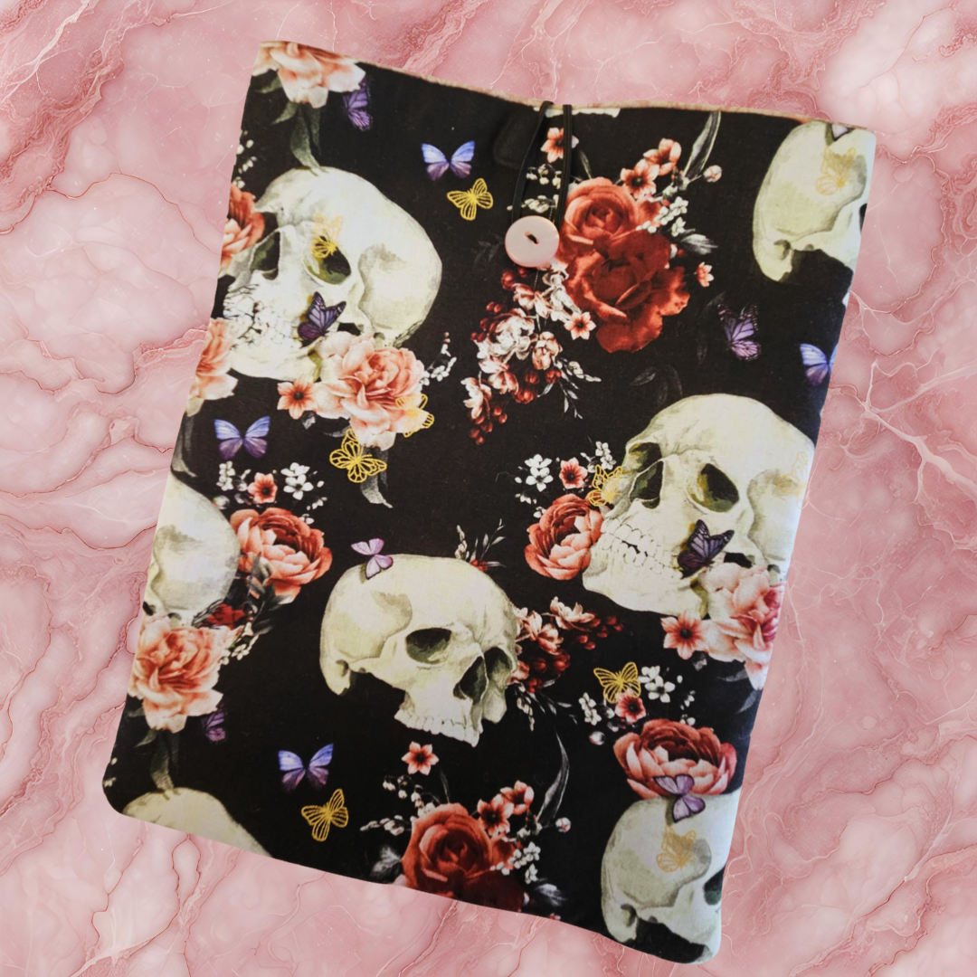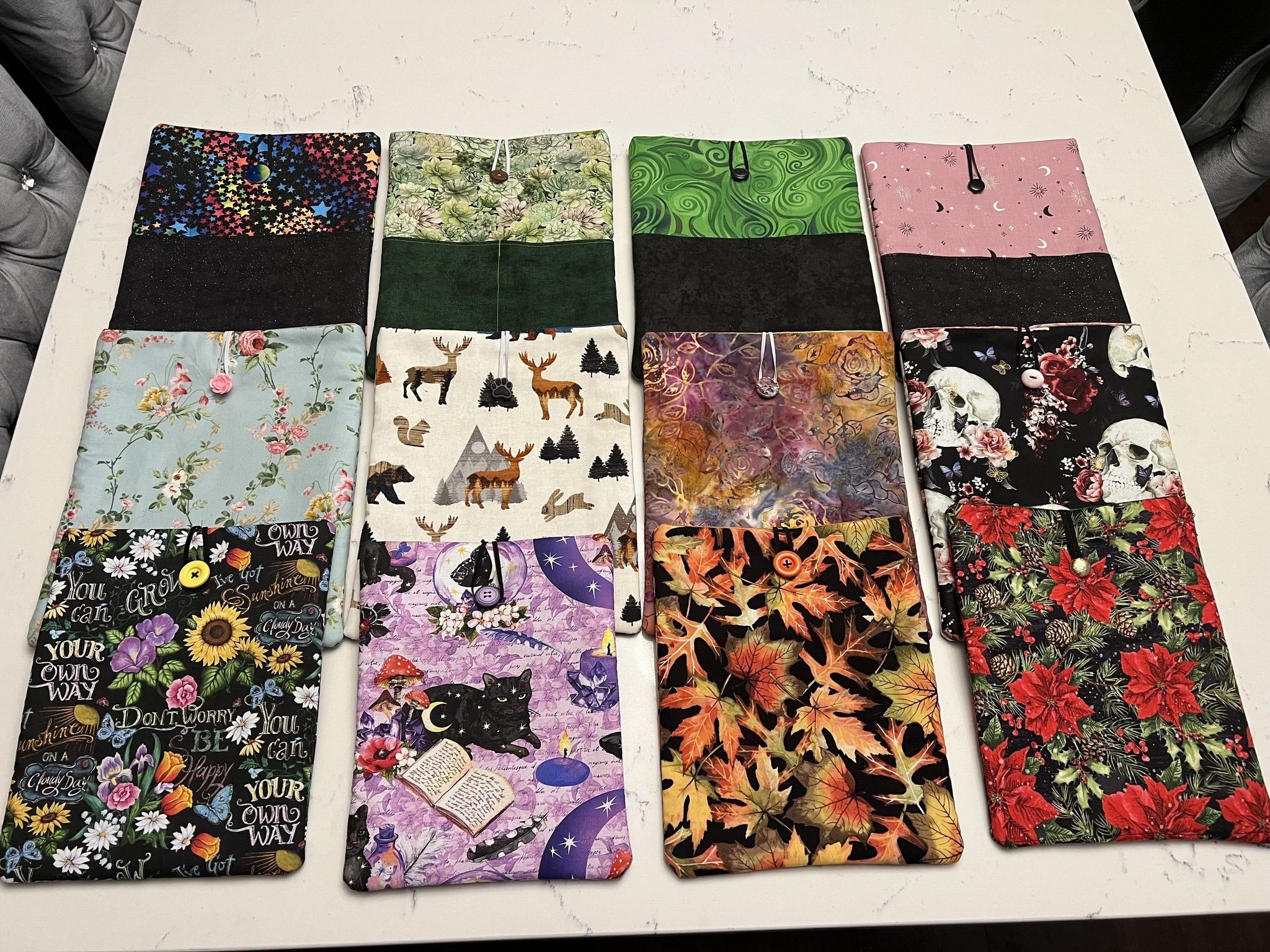 Handmade padded book sleeves for paperbacks, hardbacks, and tablets. All sleeves are made with cotton fabric and washable, with an elastic/button closure. Sleeves are able to fit a variety of book sizes.